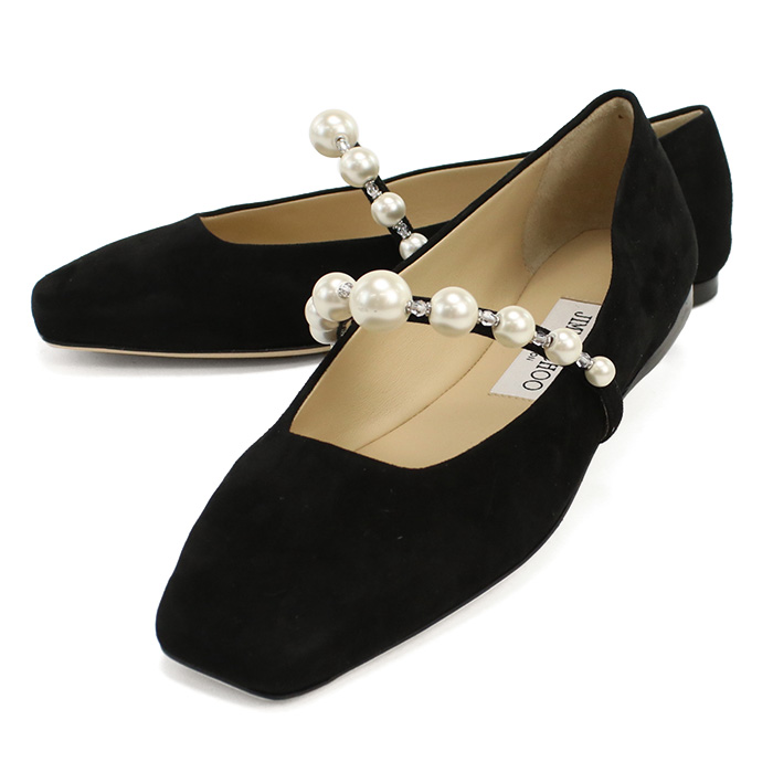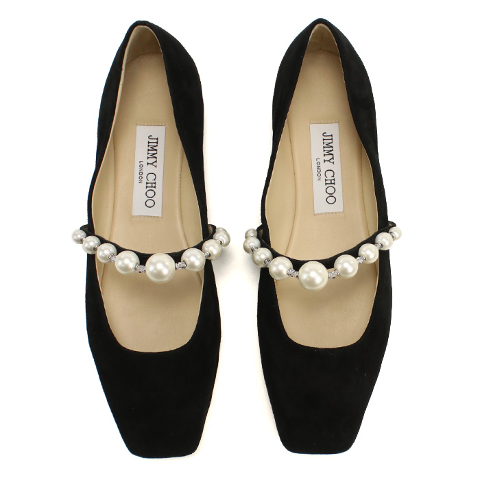 ジミーチュウ JIMMY CHOO レディース フラットシューズ ブランド パール ADE FLAT SZR BLACK-WHITE ブラック shoes-01