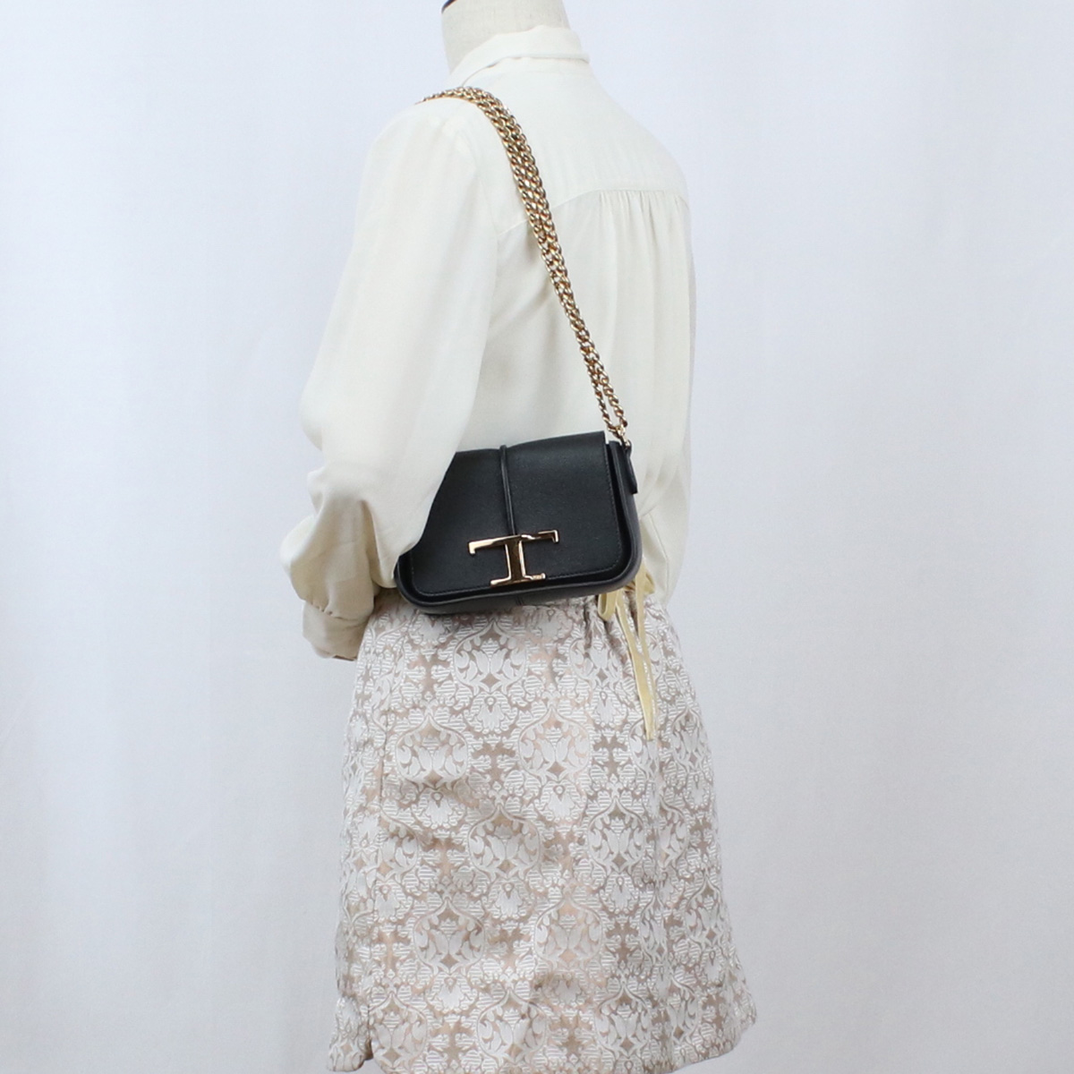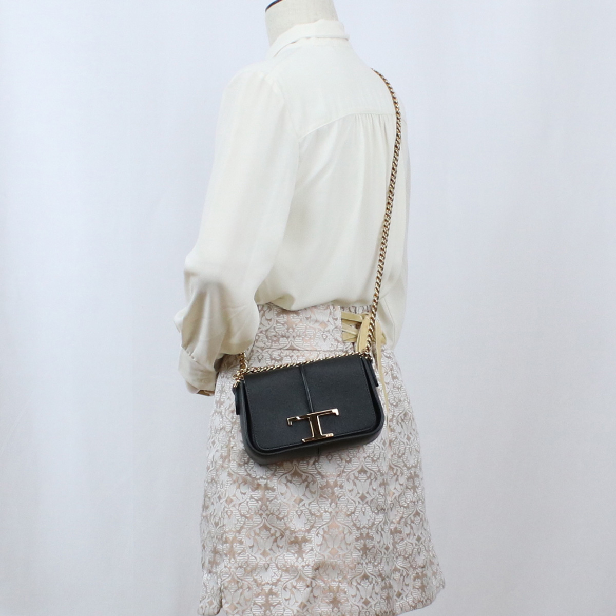 トッズ TOD'S ショルダーバッグ ブランド T タイムレス レザーXBWTSAC0000 QMK B999ブラック bag-01