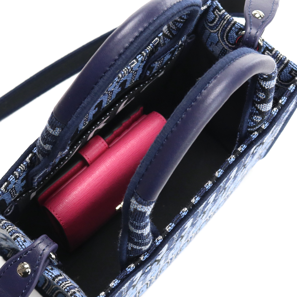 | サイズ(cm) | W22 × H16 ハンドル長さ:約26cm ハンドル高さ:約9cm ショルダー長さ:約92cm 開口部:約20cm 重量:約330g 長財布は入りませんが、W11×H9.5×D3の2つ折り財布がスムーズに入ります。 (約cm) |