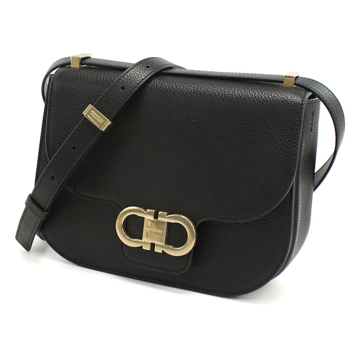 FERRAGAMO フェラガモ 斜め掛け ショルダーバッグ 21-9867 NERO DOUBLE GANCIO FLAP レディース ブラック