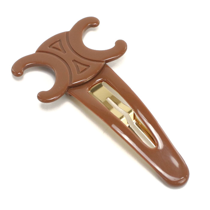 CELINE セリーヌ トリオンフ ヘアクリップ ヘアピン ラージ 460PT 6CSC 03GR レディース ブラウン