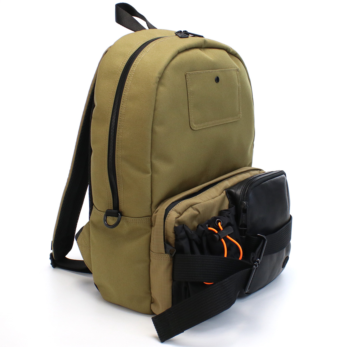 | 仕様 | ファスナー開閉 内側: ファスナーポケット×1 マジックテープ付きポケット×1 正面: オープンポケット×1 ファスナーポケット×2 ホックポケット×1 側面: カードポケット×1 A4ファイル収納可 原産国:中国 |