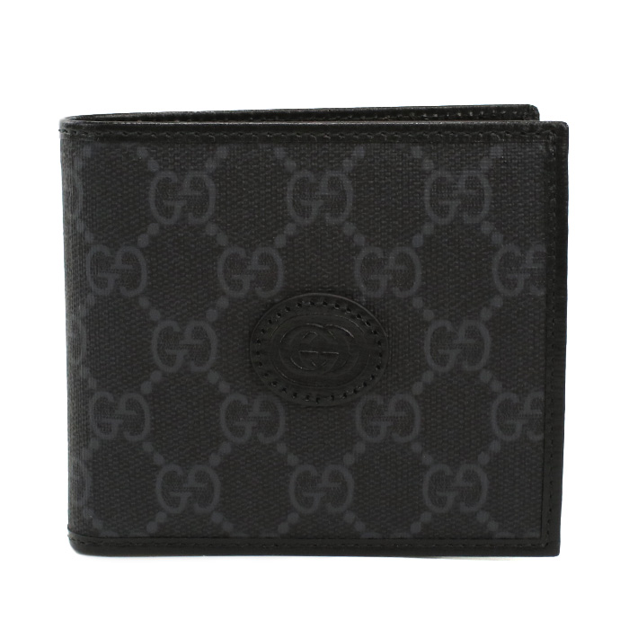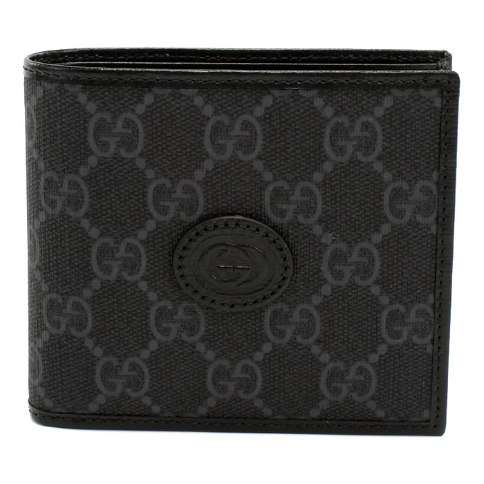 グッチ GUCCI GG RETRO 二つ折り財布 小銭入付き インターロッキングG673000 92TCN 1000ブラック グレー系 wallet-01