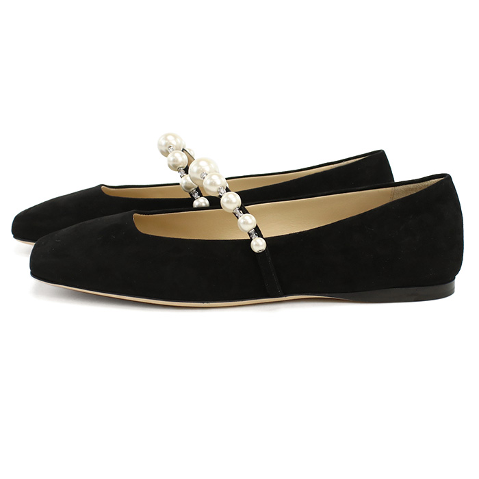ジミーチュウ JIMMY CHOO レディース フラットシューズ ブランド パール ADE FLAT SZR BLACK-WHITE ブラック shoes-01