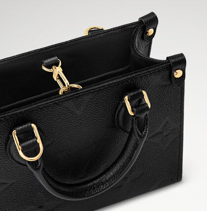 モノグラムがエンボスされたモノグラム・アンプラント レザーで仕立てたトレンディなマイクロバッグ「オンザゴー BB」。特徴的なハンドルマウントやコーナーにあしらったビス(鋲)を施したレザータブなど、オリジナルモデルのディテールをすべて備えた小ぶりのアイテムです。スマートフォンとコンパクトウォレットがぴったり収まり、取外し & 調節可能なストラップで肩掛けも楽しめます。