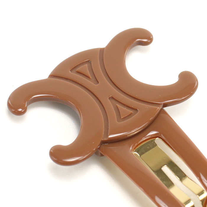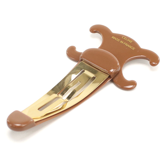 CELINE セリーヌ トリオンフ ヘアクリップ ヘアピン ラージ 460PT 6CSC 03GR レディース ブラウン