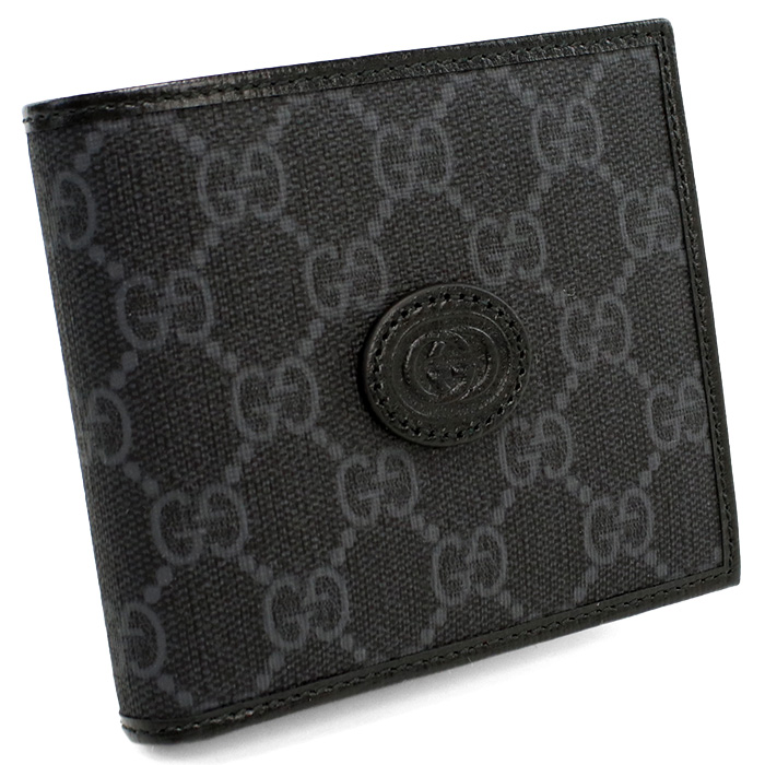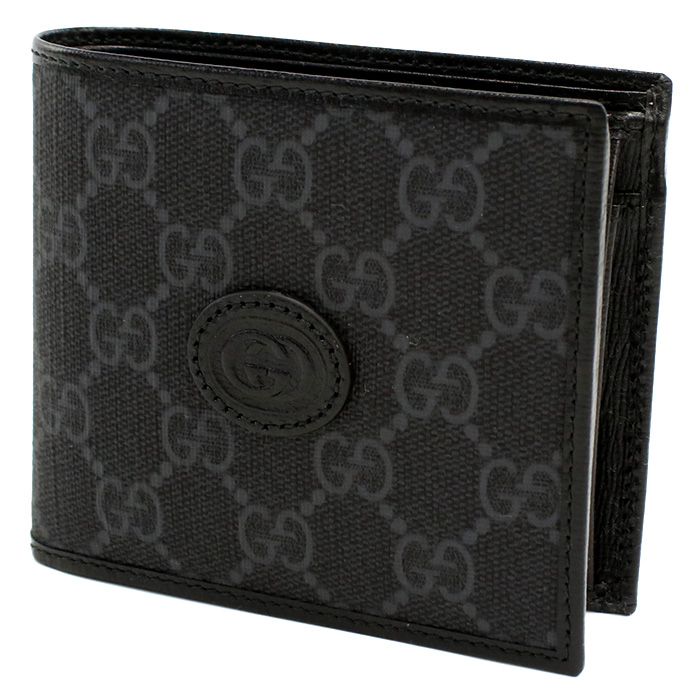 グッチ GUCCI GG RETRO 二つ折り財布 小銭入付き インターロッキングG673000 92TCN 1000ブラック グレー系 wallet-01